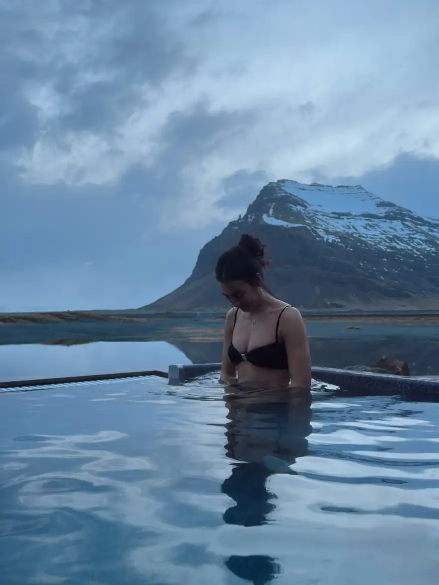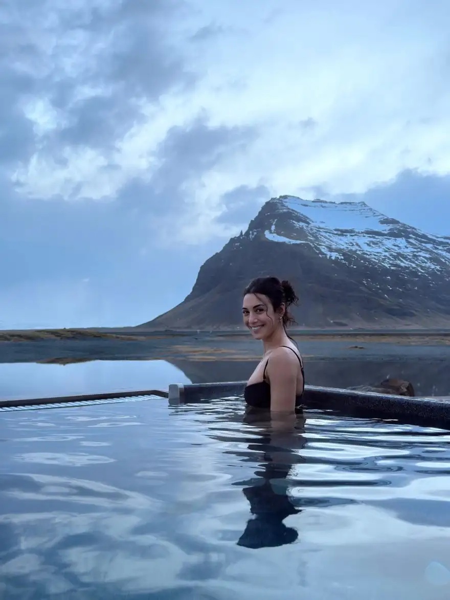 Στο πρόσφατο υλικό που μοιράστηκε μέσω του προσωπικού της λογαριασμού στο Instagram, η ίδια ποζάρει χαλαρή σε μια υπαίθρια θερμαινόμενη πισίνα. Το οπτικό υλικό αναδεικνύει την αντίθεση ανάμεσα στη ζεστασιά του νερού και το επιβλητικό, παγωμένο τοπίο που την περιβάλλει, προσφέροντας μια γεύση από τη μοναδική εμπειρία που βιώνει στο ταξίδι της.